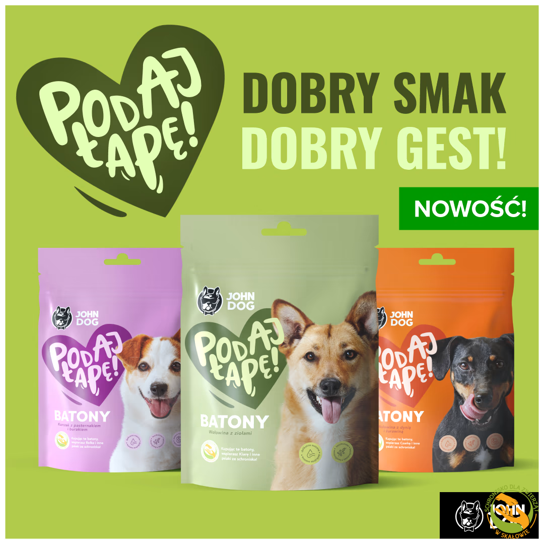 Mamy ogromną radość ogłosić, że firma John Dog przygotowała dla nas niespodziankę! Tym razem to pyszne batony, które nie tylko rozpieszczą podniebienia Waszych milusińskich, ale również pomogą wesprzeć naszych Podopiecznych.