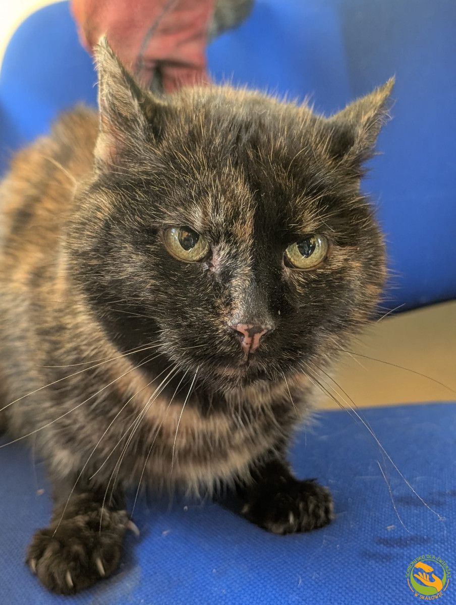 Fibi przyjechała do nas z Jasinia i od pierwszych dni widać, że człowiek nie jest jej obcy. Wręcz przeciwnie - Fibi dobrze wie, czym jest ludzka obecność i… potrafi z niej korzystać. Możliwe, że wcześniej była kotką, którą ktoś dokarmiał, ale nigdy nie dał jej prawdziwego domu.