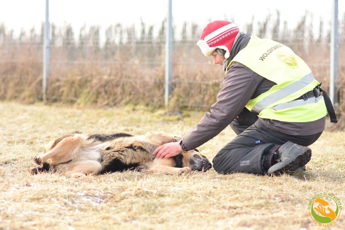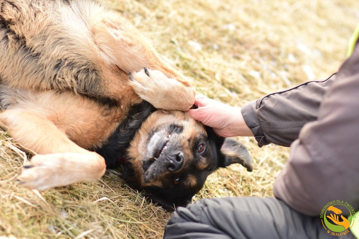 Na spacerach ożywa. Jakby na chwilę zapominał, że jest w schronisku. Idzie pięknie na smyczy, spokojny, skupiony na człowieku. Korzysta z każdej sekundy bliskości. Gdy się go głaszcze, zamyka oczy i jakby wracał myślami do dawnych chwil. Do kanapy. Do czyjejś dłoni. Do bycia czyimś całym światem.