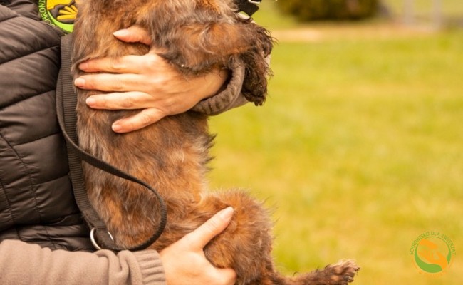 Piko to mały bohater, który trafił do nas w trybie interwencyjnym i... oj, serce pękało, gdy go zobaczyliśmy. Jego długa sierść zamieniła się w jeden wielki, filcowy kokon, a spod niego ledwo było widać psa. Musieliśmy ostrzyc go prawie do zera, żeby w ogóle mógł swobodnie oddychać i chodzić. Wtedy zobaczyliśmy, jaki z niego piękny, delikatny senior.